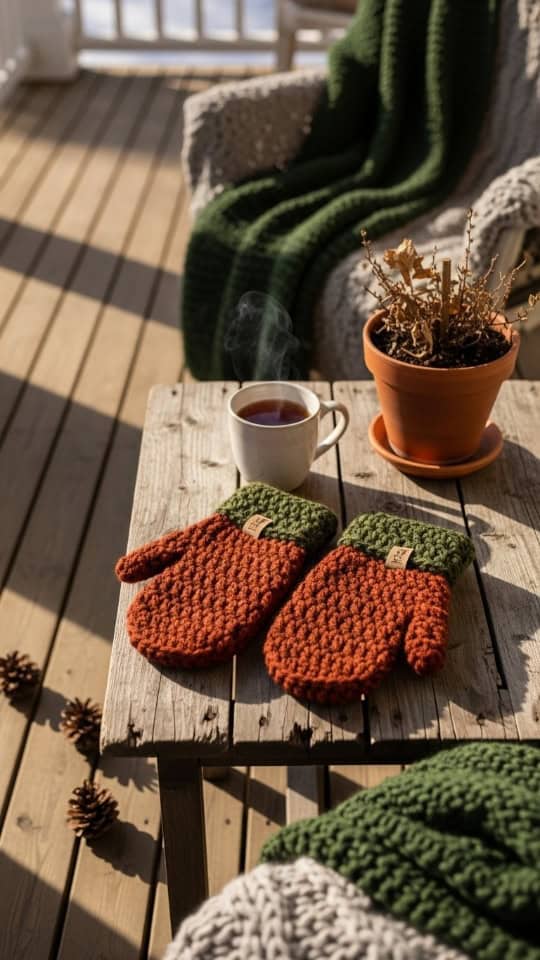 Soft cable-pattern gloves work wonders on frosty mornings. I love using chunky yarn for these, as it locks in extra warmth.