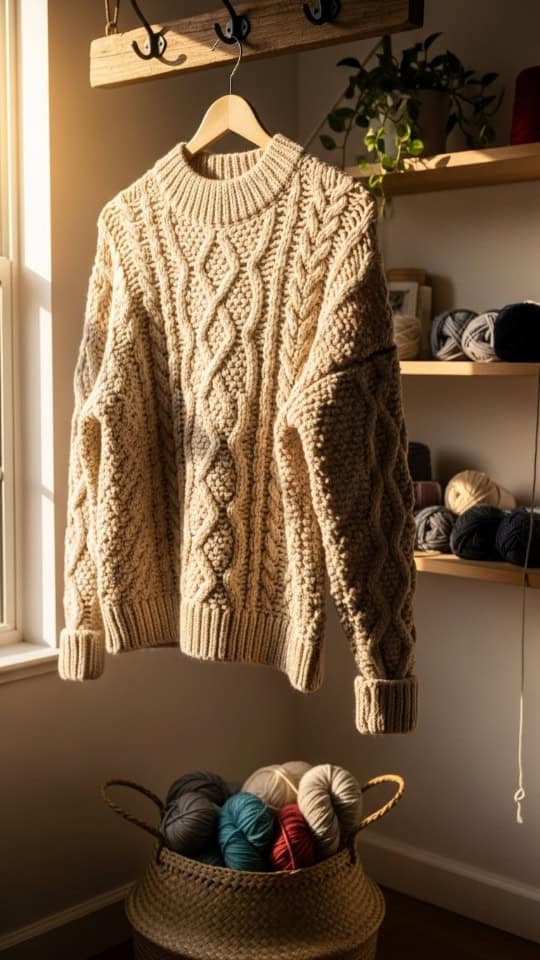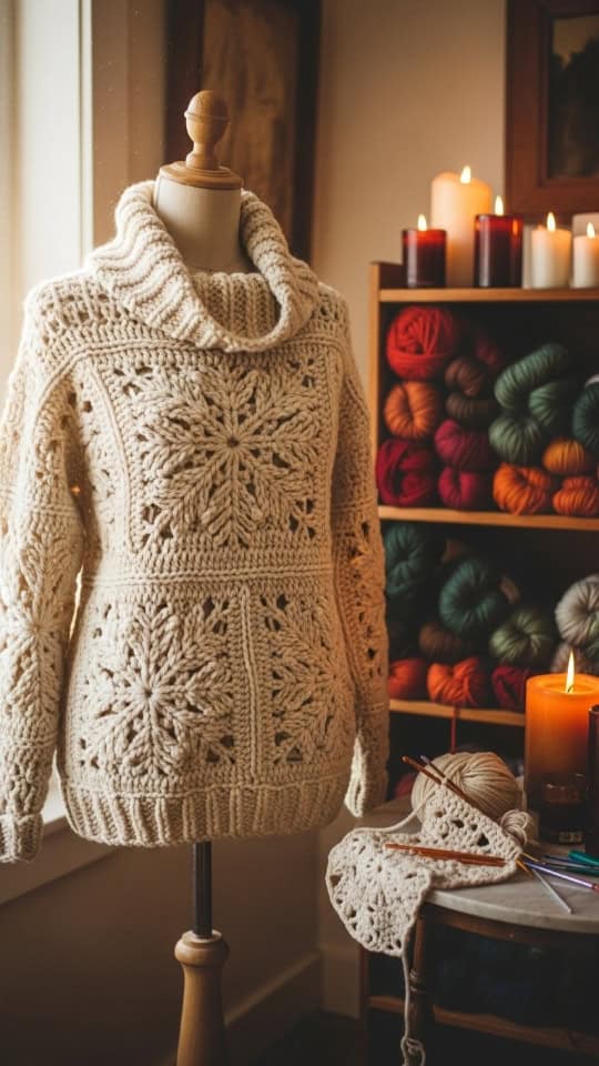 I adore a classic crochet pullover for winter. These timeless pieces combine warm cables with soft neutral tones, making them both stylish and cozy.