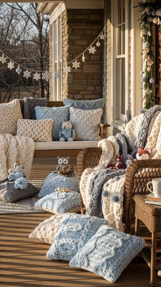I love adding crochet pillows and throws to my porch in winter. They make the space warm and inviting during chilly months. There are over 30 easy patterns for pillows that include bobbles, granny squares, and clean designs.
