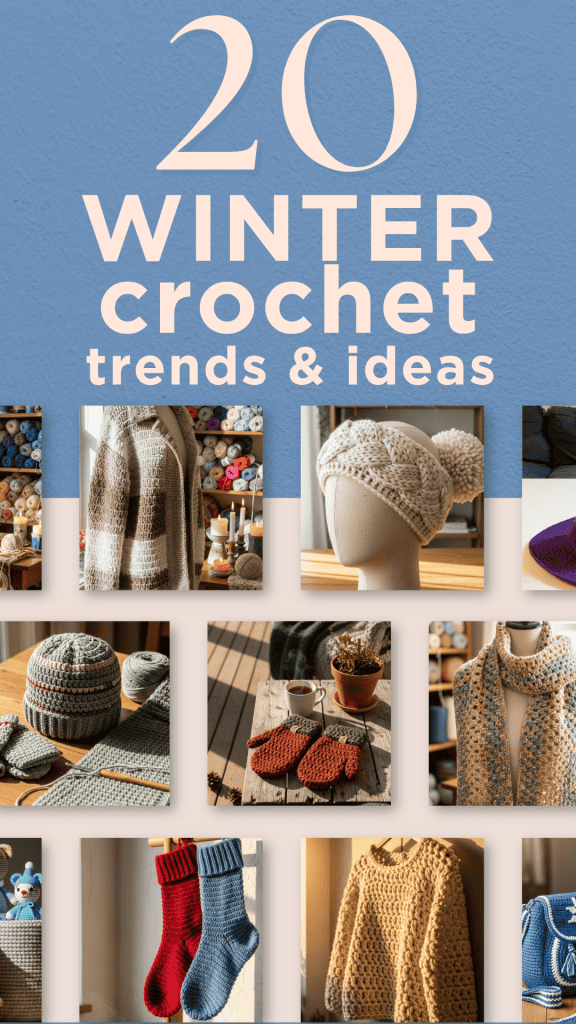 Winter crochet patterns include cozy scarves, warm hats, chunky blankets, and festive handmade gifts like mittens or ornaments.